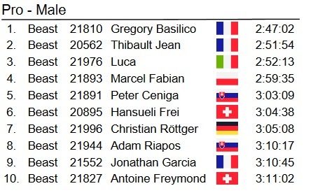Liczyłem, że uda mi się szybko zostawić Francuza, ale trzyma on moje tempo pod górę, a momentami mnie wyprzedza i to ja trzymam jego tempo. Podbieg zmienia się w podejście. Jest bardzo stromo ok. 25%, trzeba przejść do szybkiego marszu siłowego, podpierając się rękoma o uda. Kontynuujemy stale razem, wymieniamy się kilka razy, kto nadaje tempo. Przewaga nad 4 miejscem mocno się powiększa – na szycie ostatniego podbiegu wynosiła ok. 2 minut. Pozostał tylko zbieg.