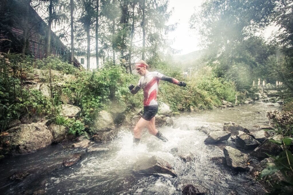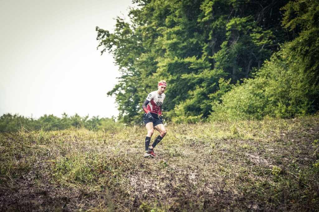 Ruszyliśmy. Mocne tempo od samego początku narzuciliśmy z Pavlem Hrdiną. Po dziesięciu minutach intensywnego biegu mieliśmy już 40s nad goniącą grupką. Pierwsze kilometry bez technicznych przeszkód, wszystko weszło gładko. Natomiast trasa była bardzo trudna na zbiegach, które prowadziły głównie po stokach o nachyleniu około -25%, pokrytych błotem.