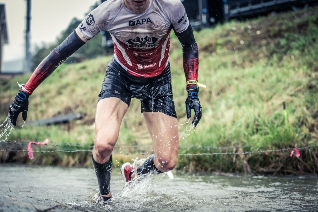 Warto podkreślić dwie kluczowe rzeczy w moim wyposażeniu: buty VJ XTRM 2, świetnie radzące sobie na błocie, oraz rękawiczki OCR GO, chroniące dłonie przed wyziębieniem przy zachowaniu czucia na przeszkodach. Ze źle dopasowanym bieżnikiem w butach, nie ma co szaleć na takiej trasie. Co do żywienia, jeden żel energetyczny wystarczył.
